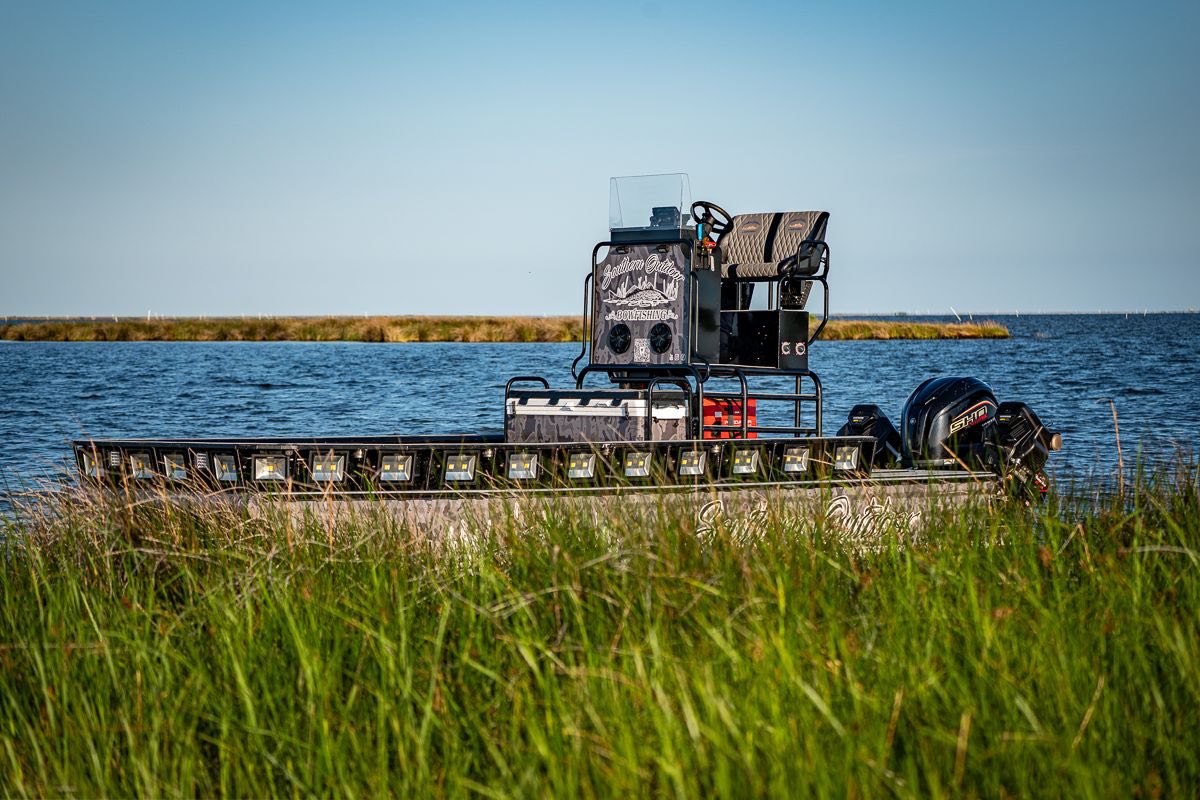 We are excited to announce the expansion of our fleet. We’ve teamed up with Phoenix Airboats to create a 24 x 9 Bowfishing rig equipped with a 250 hp Yamaha SHO and flanked by Gatortail‘s brand new Z Drive motors. The size of our new mothership enables us to carry a full load with guests comfortably and travel further to stay on the fish when needed. Our calendar and bigger party bookings are already taking off. Stay tuned for even more expansion in 2026!